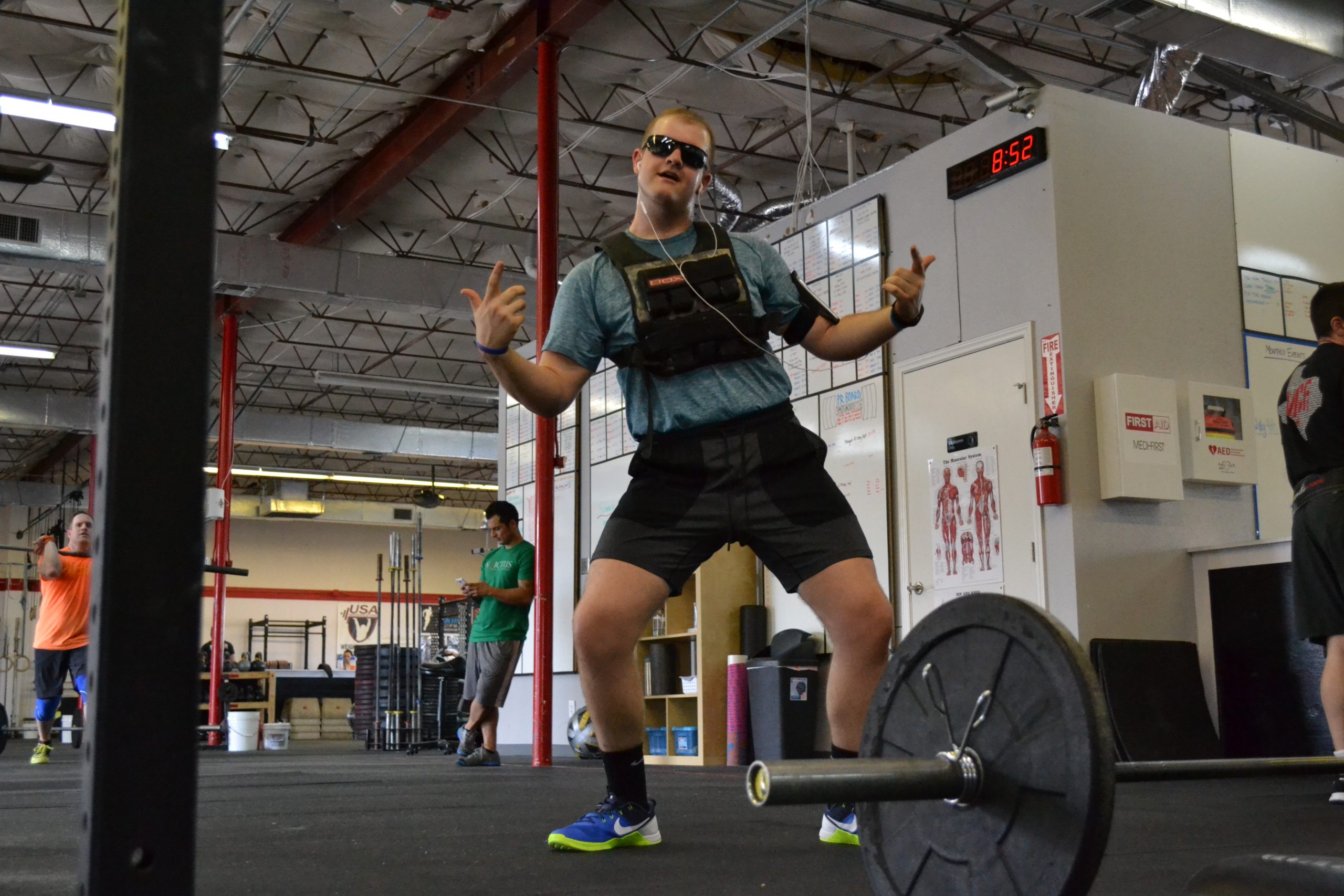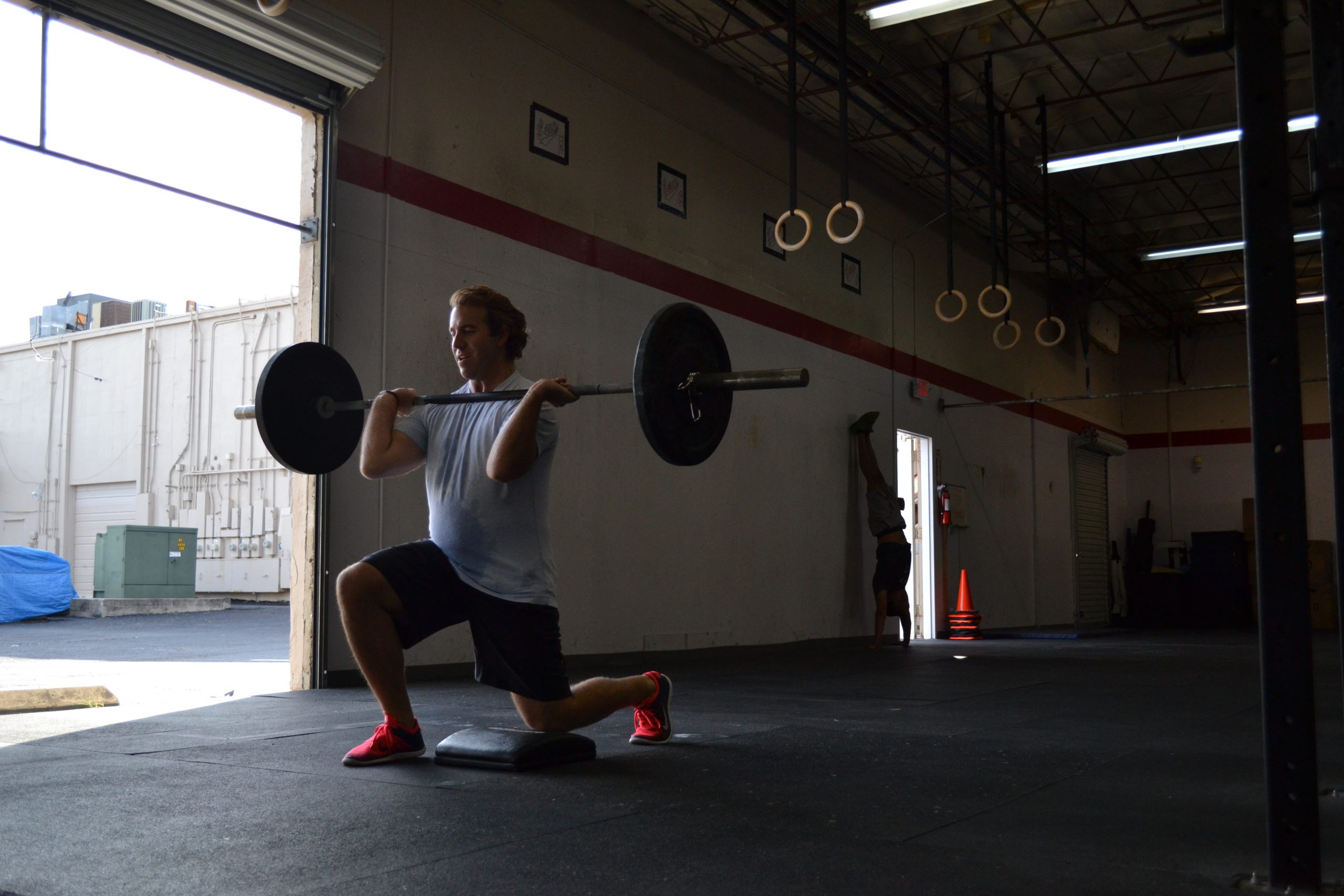 1- 10 toes to rings 2- 15 wallballs (20/14) 3- 15 V-ups 4- 20 OH lunges (45/35)