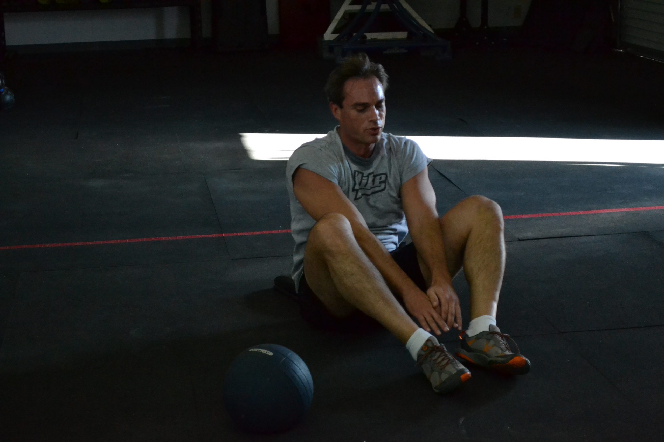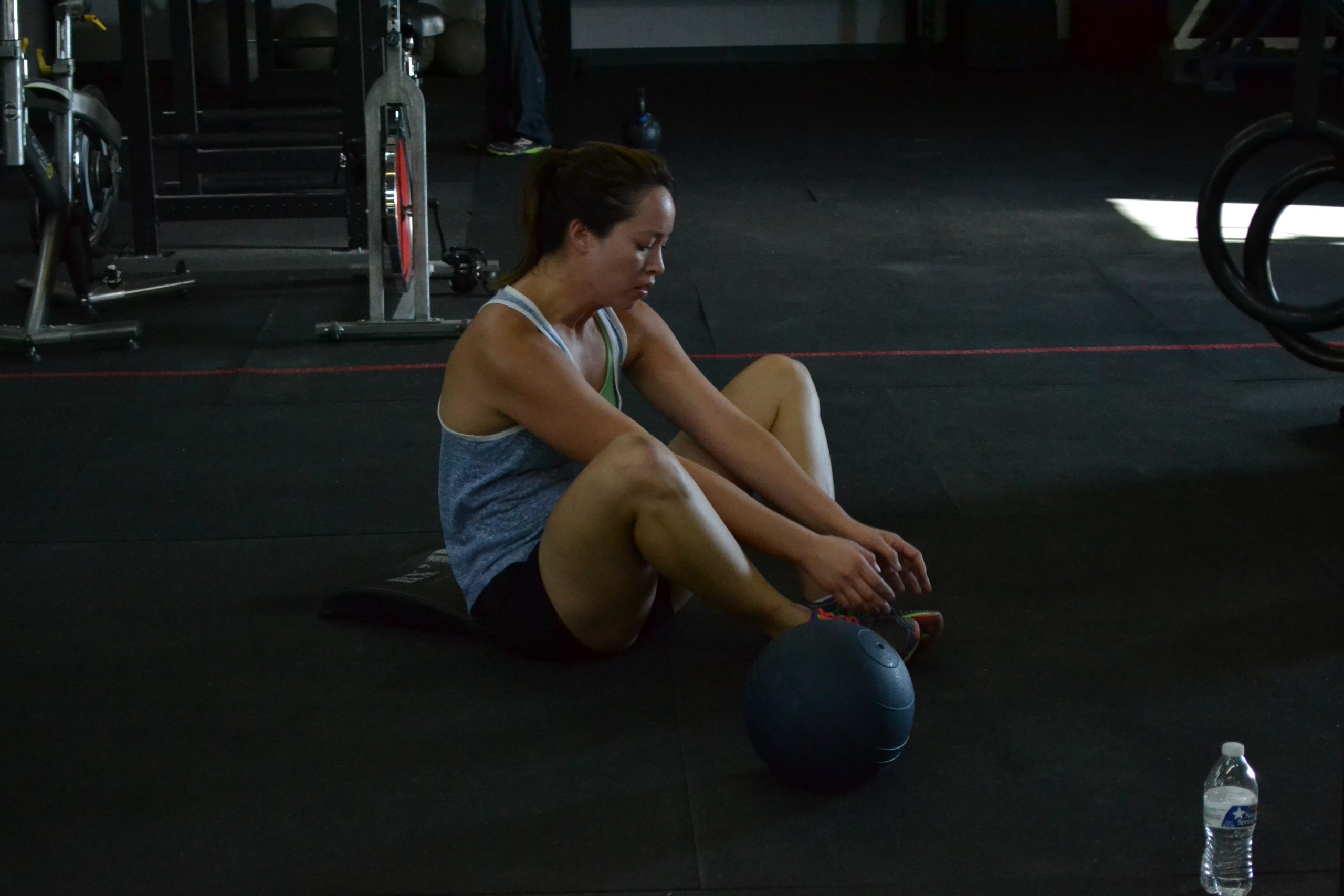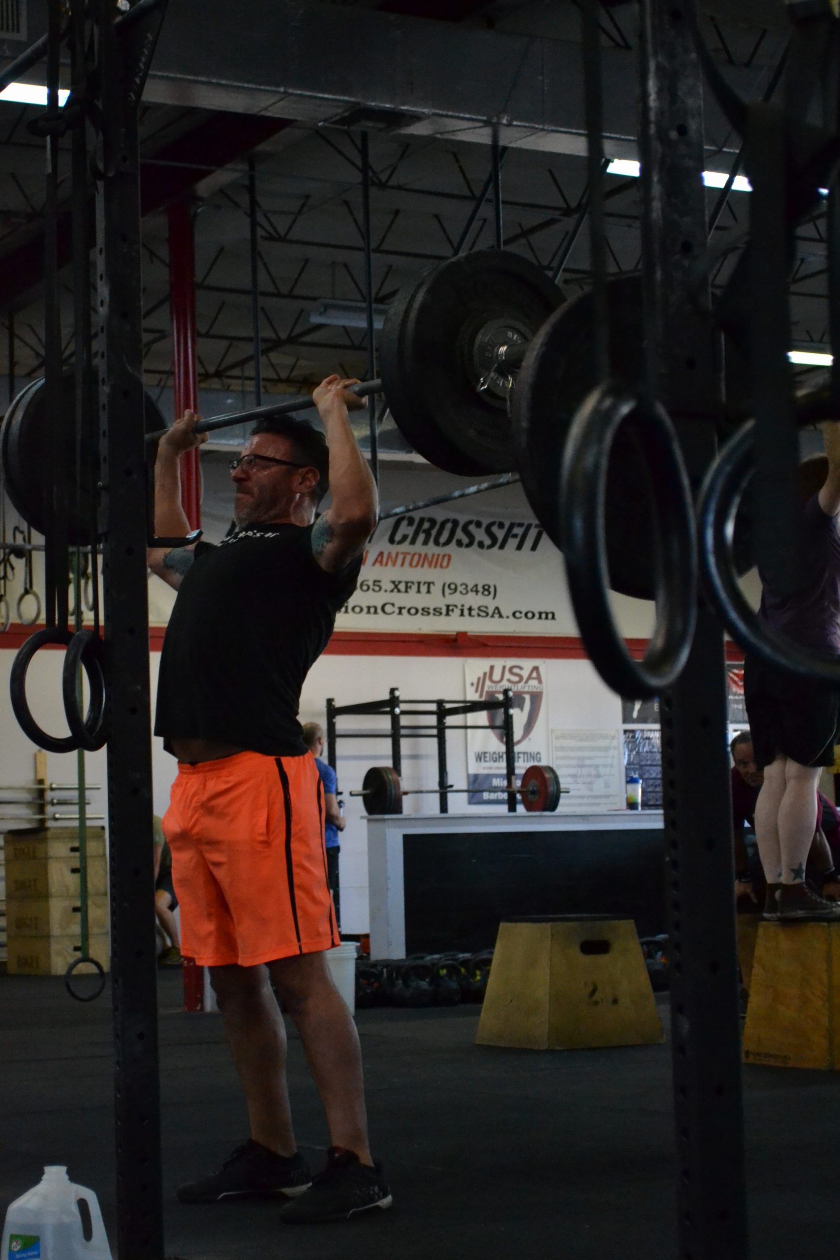 12 Ring dips 12 Push presses (135/95) 24 Ab mat sit ups 24 Burpees to a vertical target 36 Jumping lunges (total) 800m Run