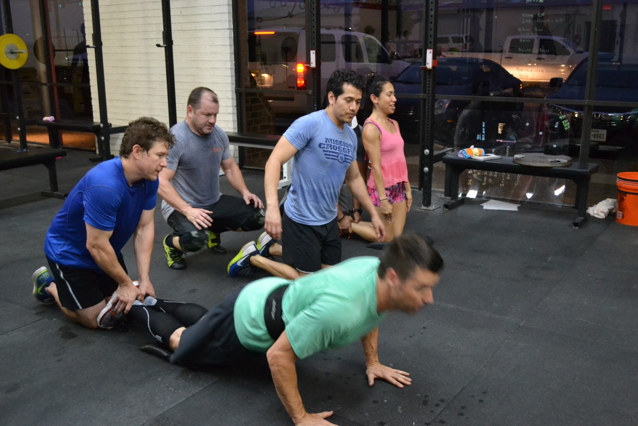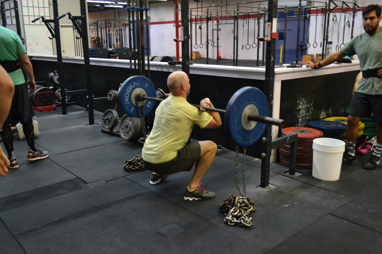 5 Rounds: 15-12-9-6-3 HSPU 10 FSQ (135/95) 5 OHS