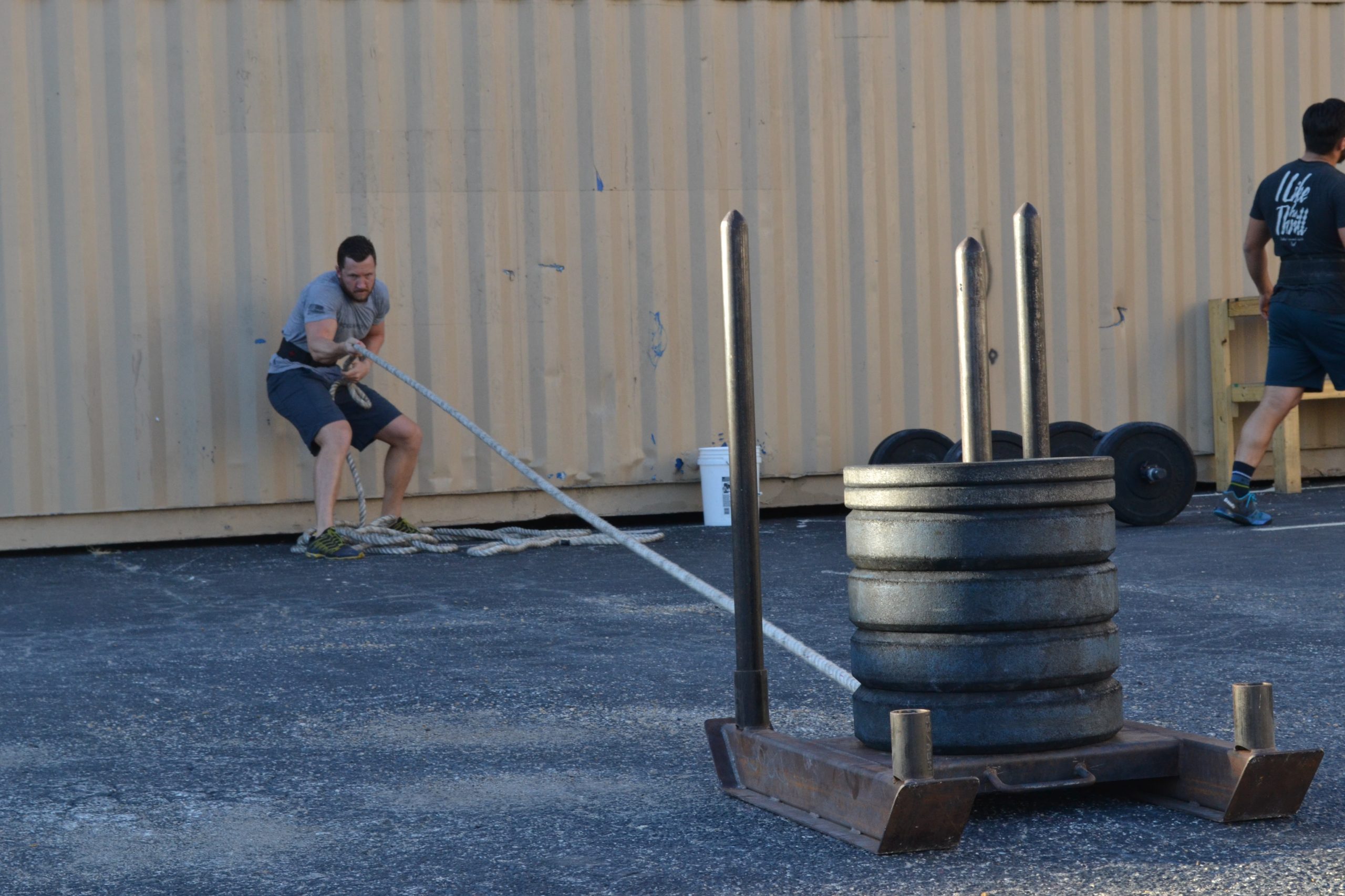 400m Run together 20 Alternating power clean (155/105) 25 Burpees with band 35 Partner WBS (20/14) 50 Slamball sit-ups (30/20) 35 Partner WBS 25 Burpees with band 20 Alternating power cleans 400m Run together